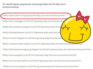 Terima kasih kepada kak diana selaku penganjur dan The Baby Store sebagai penaja utama giveaways kali ini.