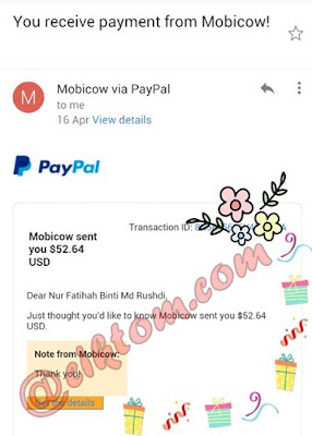 Hehe, alhamdulillah saya pun dah menerima bayaran dari Mobicom lebih 20 kali
