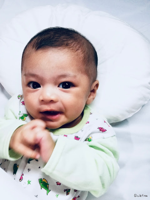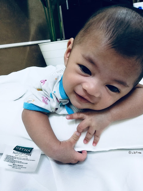 Sebelum ni ciktom rasa asal beli je bantal baby tu nampak comel. hihi.. Dulu waktu kakak okay takde masalah kepala. Sekali turn adik Indera suka betul tidur mengiring belah kanan. Yang menyedihkan kesannya kepala Indera jadi flat head belah kanan.