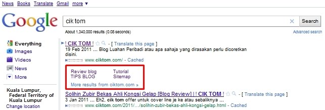 Bagi yang nak tahu lebih lanjut tips untuk mendapatkan Google Site Link boleh rujuk di entry blog aried, “Bagaimana cara untuk mendapatkan Google Site Link?”.