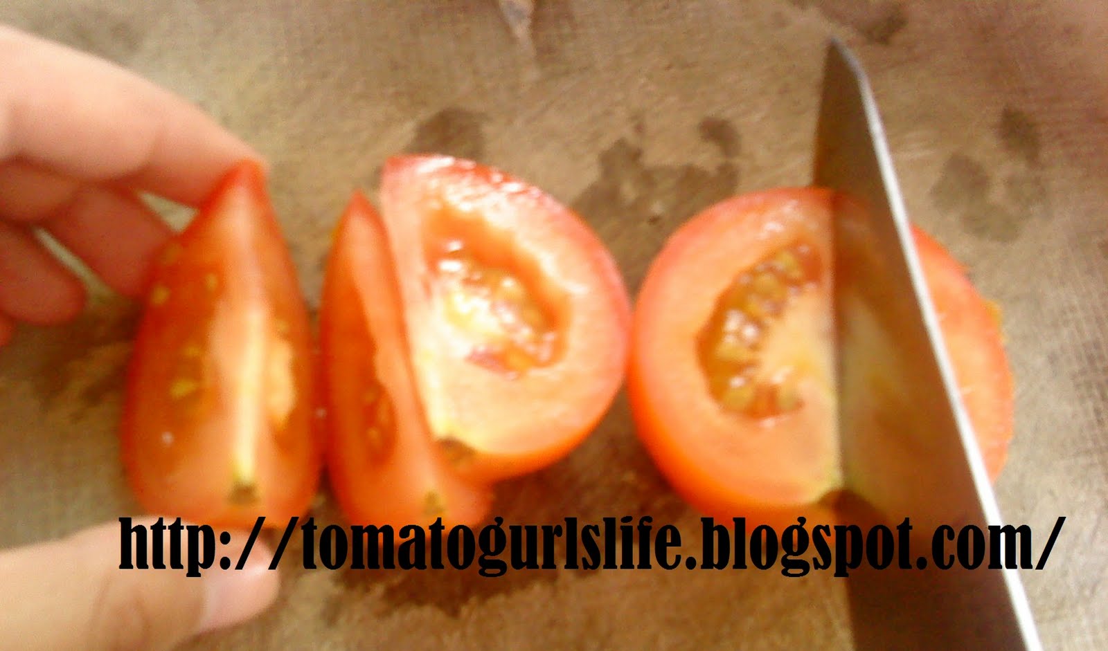 2) Potong buah tomato bagi memudahkan proses bila blend.
