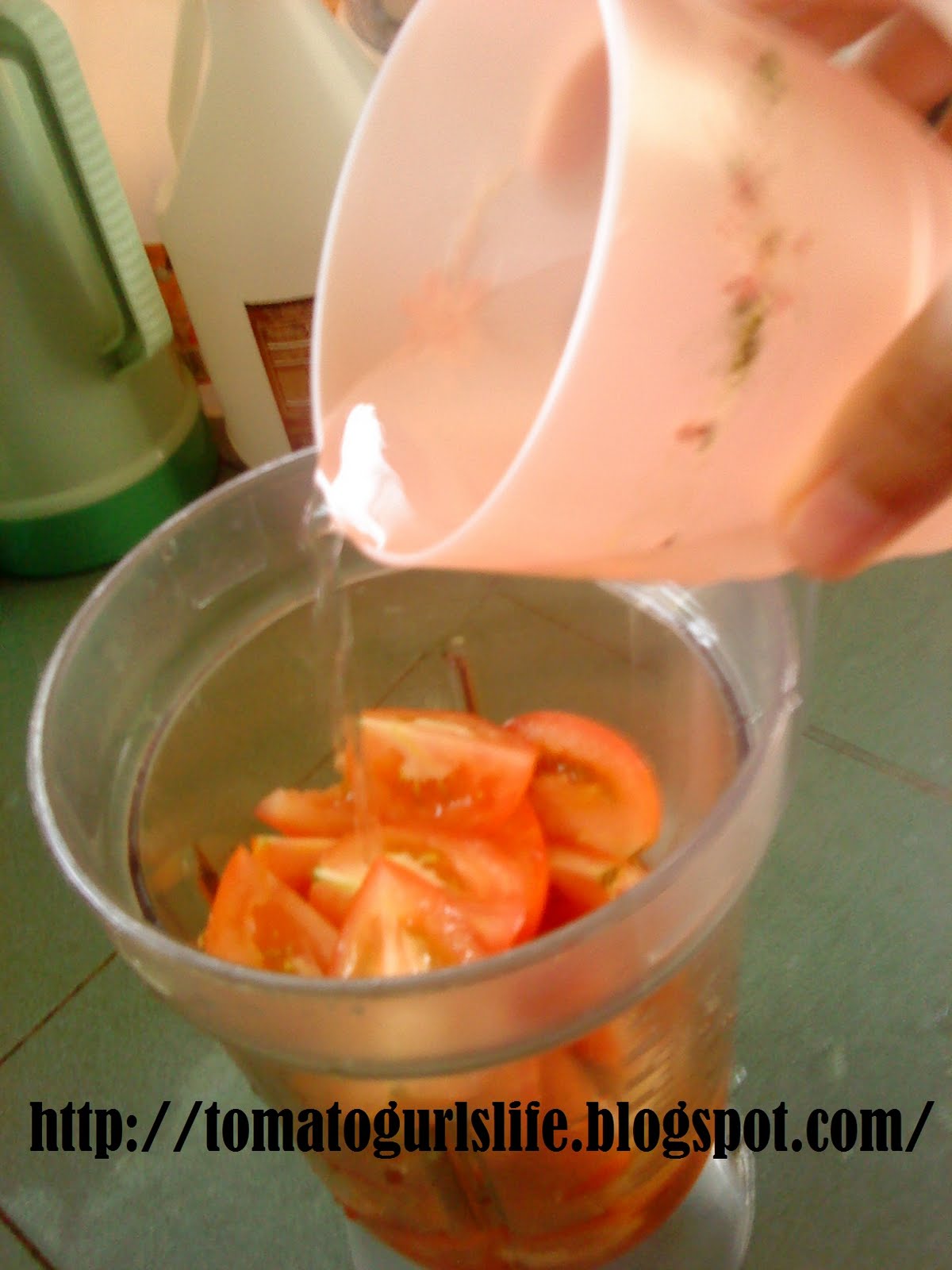 4) Masukkan air ikut citarasa masing2. kalau suka pekat letak air sedikit je. tapi tomato ni pun dah hampir 90% kandungan air so tak perlu letak banyak air. cukup secawan je.