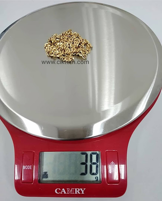 Dalam gambar ni test sesaja la timbang berat rantai leher emas tu. Tak sangka berat rupanya. Kalau harga sekarang memang tak mampu ciktom nak beli. Yelah harga emas kualiti 999 tau bukannya 916. huhu..