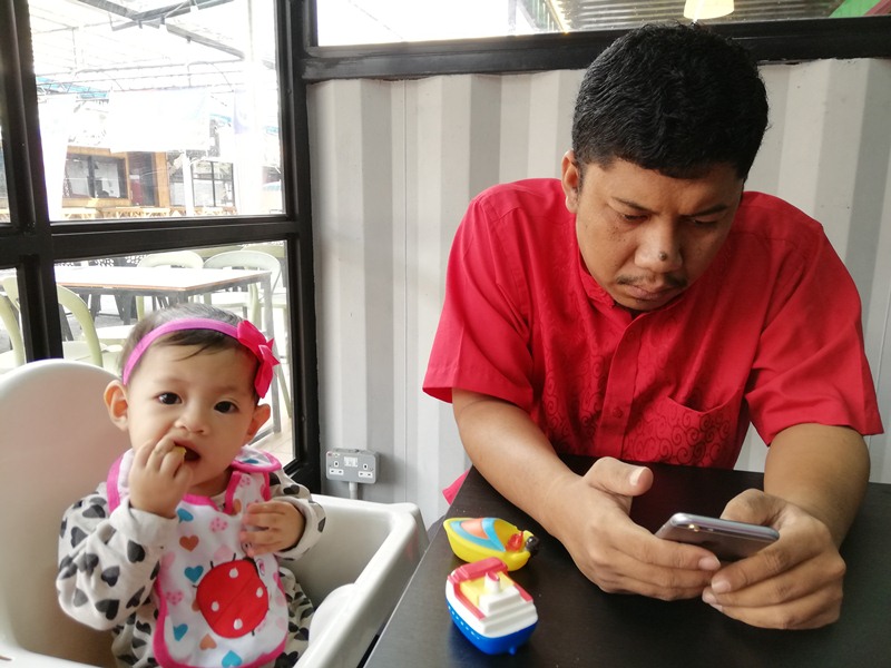 Sementara tunggu makanan siap, ciktom bagi adira makan kenyang-kenyang dulu. Kalau keluar ciktom memang standby bubur dan biskut untuk dia gigit2. Tak lupa juga toys kesukaan dia supaya dia tak bosan.