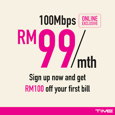Jadi korang jangan lepaskan peluang untuk jadi pelanggan terawal yang melanggan pelan internet dari TIME dengar kadar berpatutan iaitu hanya RM99 untuk kelajuan internet 100Mbps. Lagi best dapat potongan sehingga RM100 untuk bil pertama tau! Tawaran dari TIME ini hanya pada waktu terhad dan secara online sahaja. Untuk maklumat lanjut atau ingin jadi pertama yang mendaftar, jom klik sekarang >> http://bit.ly/2QpMgh1.