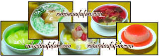Taufufah dan air soya ialah minuman popular yang menyejukkan badan selain memberi sumber protein yang mengenyangkan. Pernah tak lagi korang cuba hidangan taufufah cendol, taufufah krim karamel, taufufah jagung koktel, taufufah kek karamel, taufufah jelly strawbery, taufufah air tebu dan banyak lagi?? Mesti rata-rata belum kan?? Hidangan pelbagai aneka taufufah ini memang sedap dan lazat.