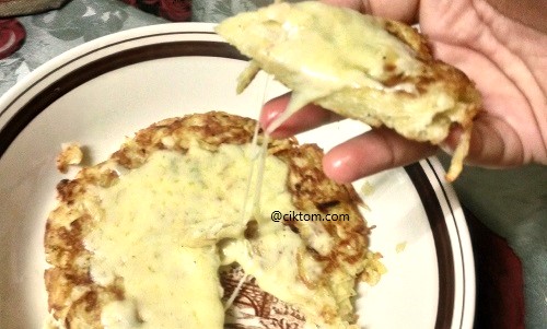 - Bagi yang gemarkan cheese, anda boleh taburkan cheese di atas pancake tersebut seperti yang saya buat. Jika inginkan kelainan, anda juga boleh gaulkan cheese bersama kentang dan bawang sebelum di goreng.