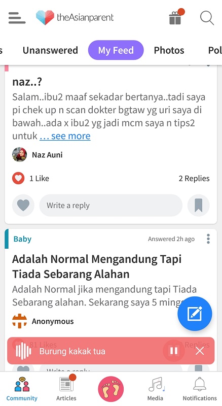 Selain bertanyakan pada pakar perubatan, kekadang korang nak juga sharing session dengan ibu bapa yang seangkatan dengan korang kan. Yang faham apa perasaan korang, berkongsi pengalaman, tips dan pendapat. Saling support each other dengan positif vibes sangat dialu-alukan untuk join forum komuniti theAsianparent.