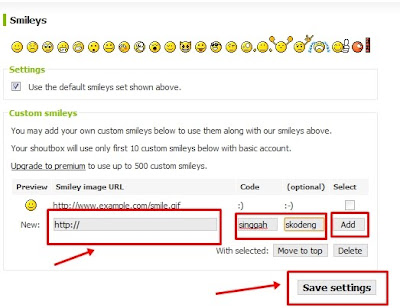 Klik “Add”. Masuklah semaksimun 10 smileys icon bagi yang percuma/basic. Puas hati sila klik “Save settings”